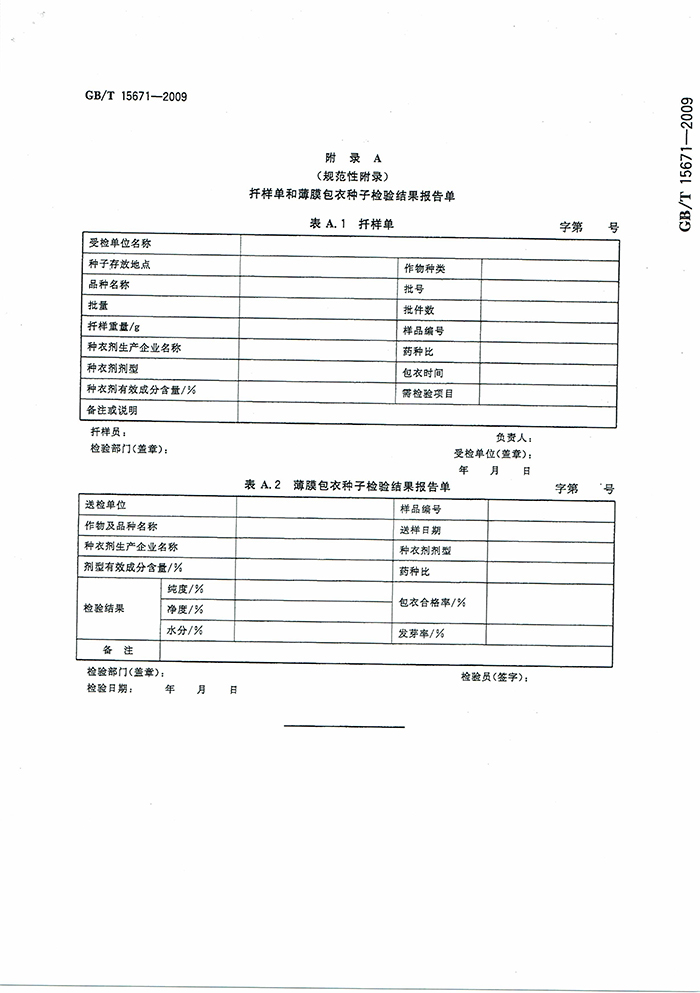 GB/T15671-2009農(nóng)作物薄膜包衣種子技術(shù)條件國家標準